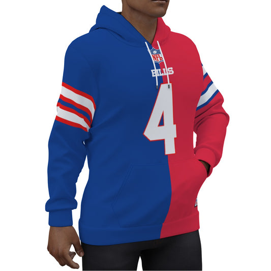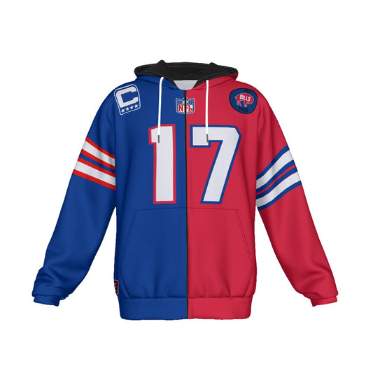 Josh Allen Zipper Buffalo Bills Half and Half Jersey Hoodie